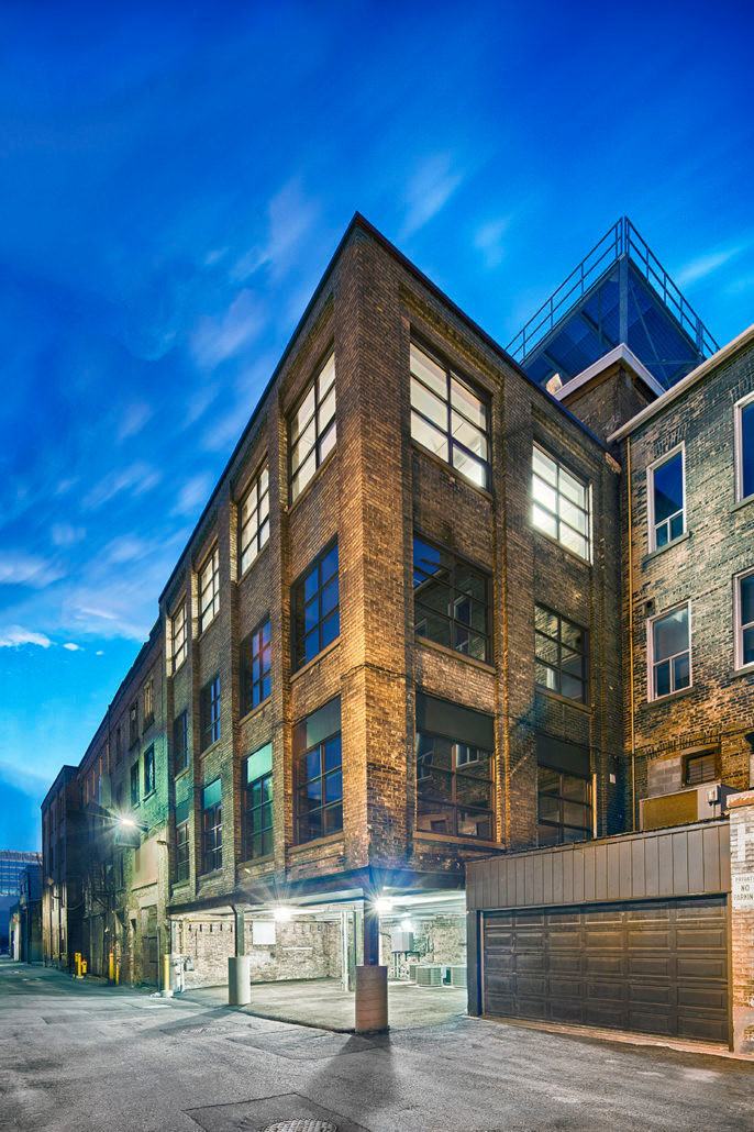 The Simpson Block, located at 115–119 King Street West, was originally constructed in 1895 as the home of William Simpson’s furniture factory and retail store. As part of its transformation, the heritage structure was carefully redeveloped to accommodate contemporary office uses while preserving its defining architectural character. The four-storey brick-and-beam building retains features such as exposed brick walls, open ceilings, and restored arched windows that reflect the building’s historic craftsmanship.