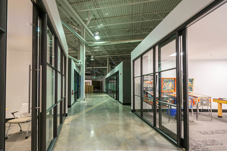 Miovision is an interior fit-out of a 68,000 square foot space located at Catalyst 137 in Kitchener. [Catalyst 137](https://www.zehrgroup.ca/projects/catalyst137) is being transformed into high-end office and manufacturing space, and Miovision is no exception. This space will be home to a fast-growing tech company with a unique office environment. Miovision’s space will have an open-office environment with collaborative work space and a variety of meeting rooms. The space will have amenities such as a yoga room, bicycle storage, and ‘The Hub’, a kitchen and cafeteria large enough to house town hall meetings. The 24 foot ceiling height will give the space an industrial feel, while the DIRTT modular walls will allow for future expansion and flexibility in the space.