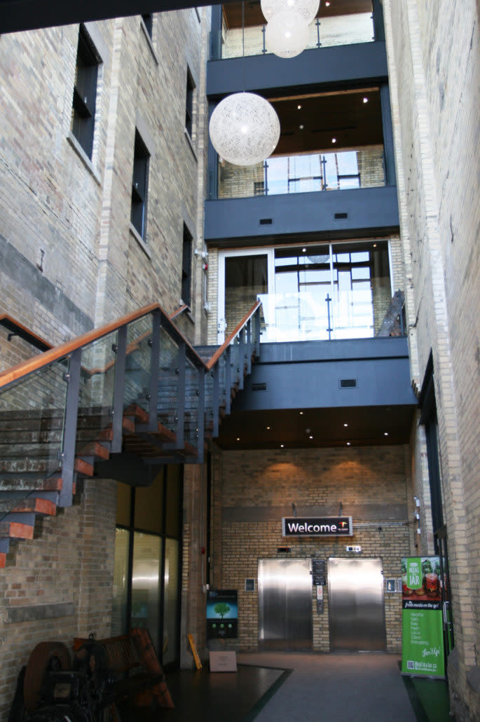 The Lang Tannery Company began construction of their large downtown Kitchener facility in 1896. Construction continued through until 1917, and the building served as the largest leather tanning facility in the British Empire until 1954. Redevelopment work began in 2009 to transform the space into mixed-use retail and high-end office space. Over the course of two years, Zehr Levesque with Cadan Inc. and RAW Design worked to renovate, restore, and renew all of the building’s infrastructure including structural, mechanical, and electrical work. The heritage value of the property was preserved through sandblasting and restoring the brick and beam construction and exterior elements. Modern features such as a new elevator core, contemporary washrooms, and common spaces were added to the property. In 2012, Zehr Levesque Inc. won the Grand Valley Construction Association, Building in Excellence ‘Game Changer’ award for the office complex that now houses many prominent technology companies.