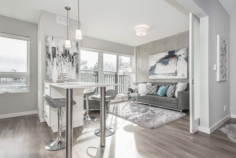 Walter Street is a new four-storey, 38 unit apartment building in downtown Kitchener. This building features a modern design with a variety of one and two bedroom layouts. The building also includes covered parking and a large outdoor amenity space for all tenants.
