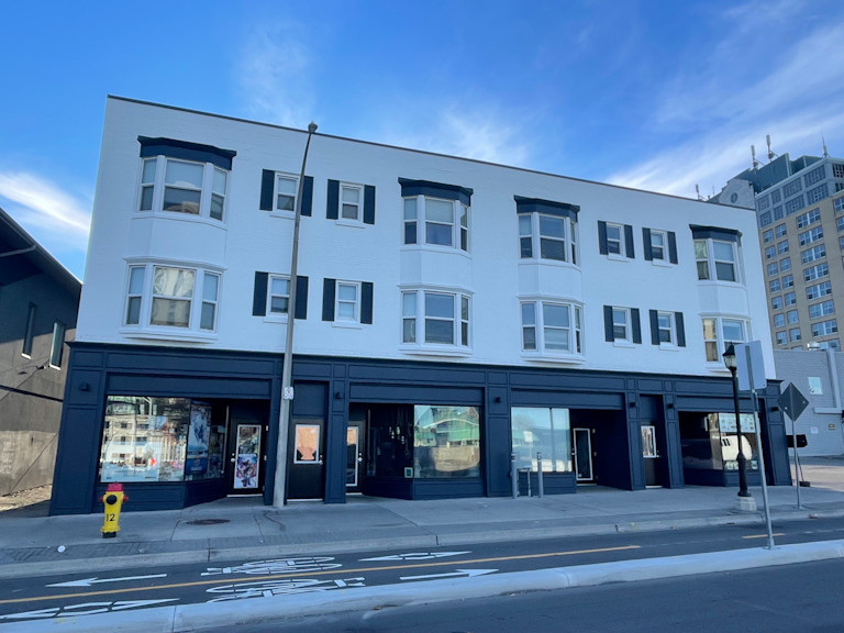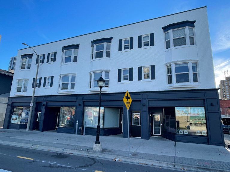 The redevelopment introduced three street-level commercial units totaling approximately 4,400 square feet alongside 16 loft-style residential suites above. During construction, the team focused on highlighting the building’s historic character, maintaining features such as original hardwood floors, exposed brick walls, and heritage detailing while integrating updated building systems and modern finishes.