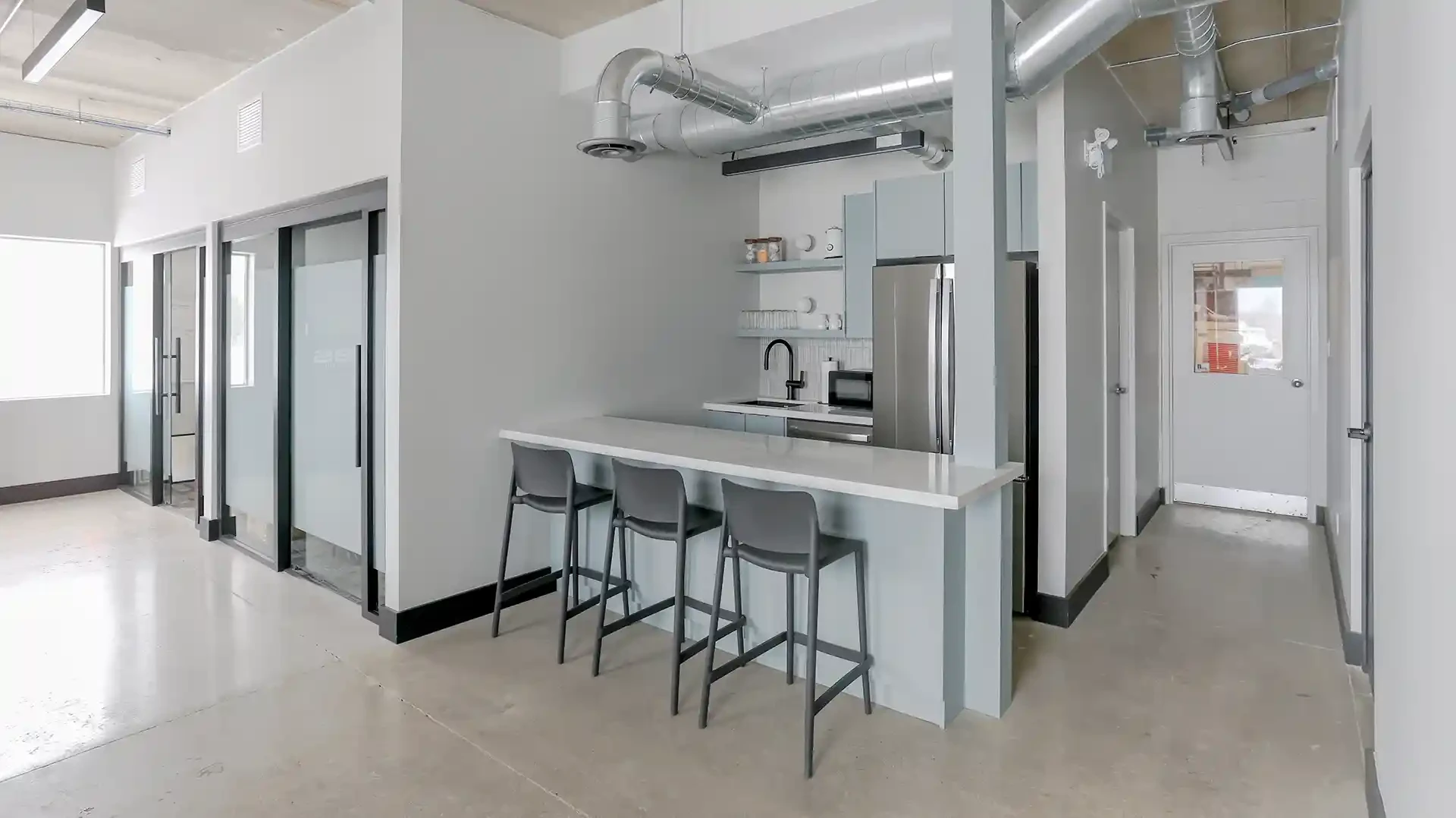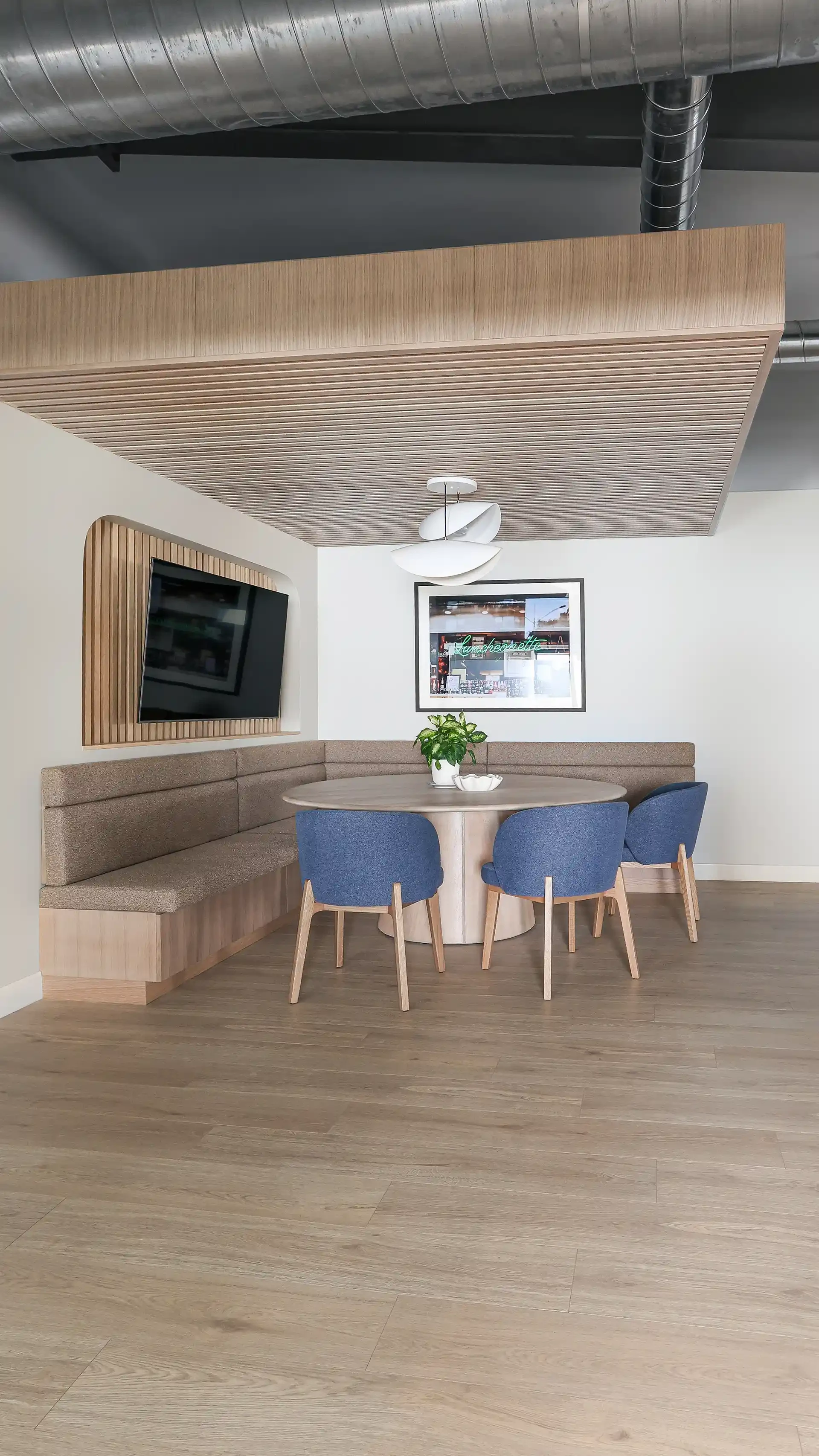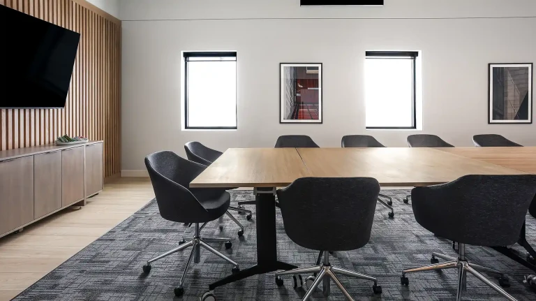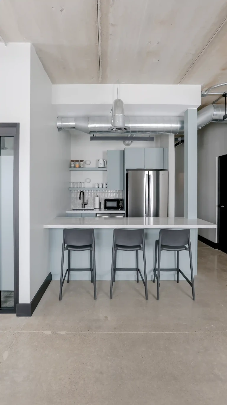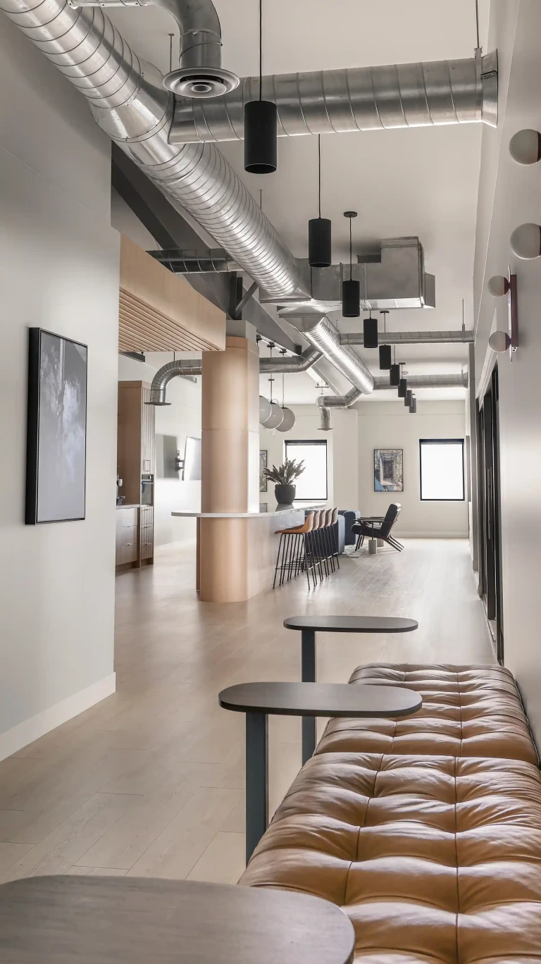 Working in partnership with Leo Design Interiors, the project focused on the full renovation of the company’s breakroom and meeting room, transforming the spaces into modern, functional environments for staff and visitors. The work included updated finishes, improved layouts, and carefully coordinated construction details that elevate the overall workspace experience.