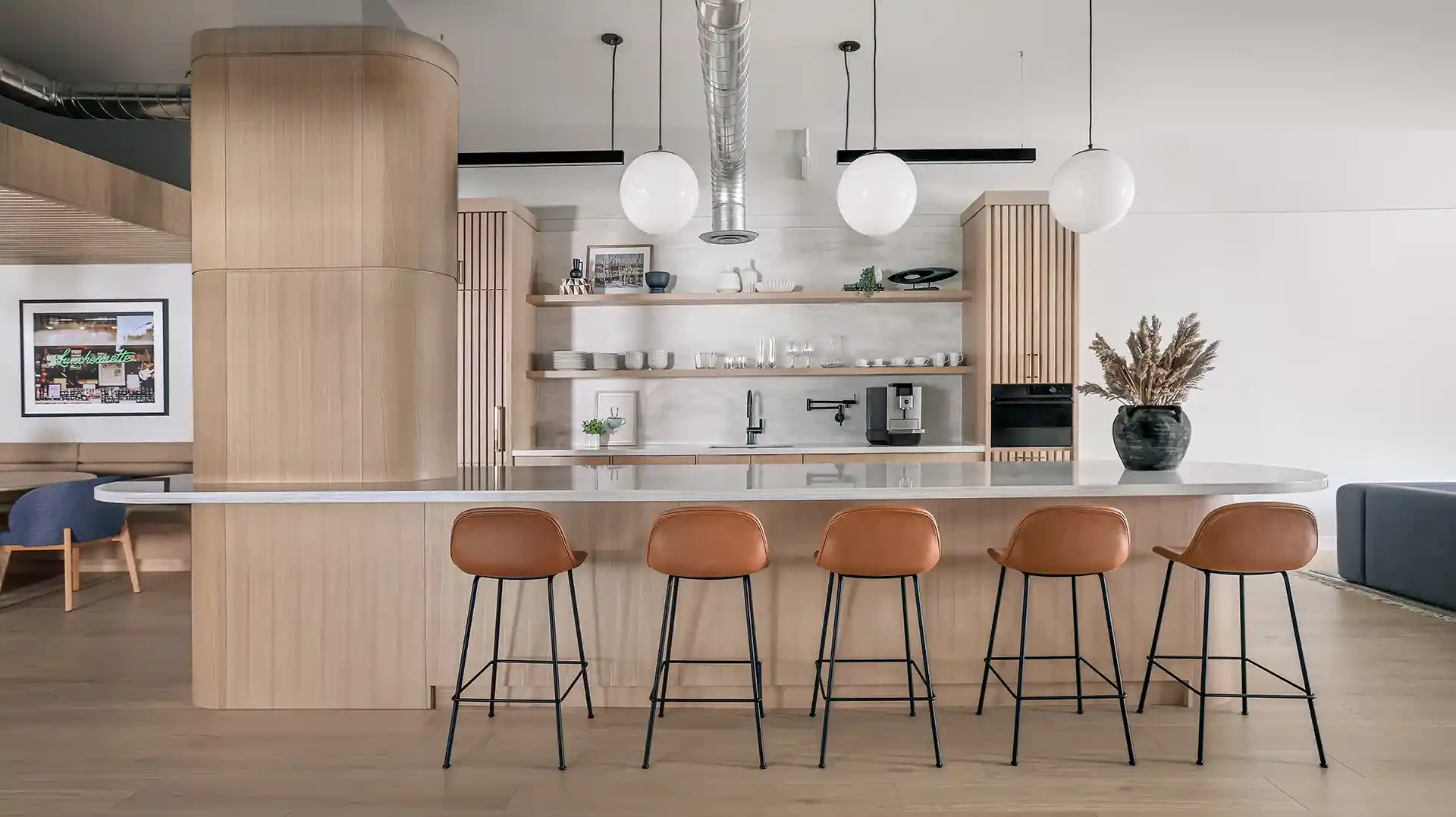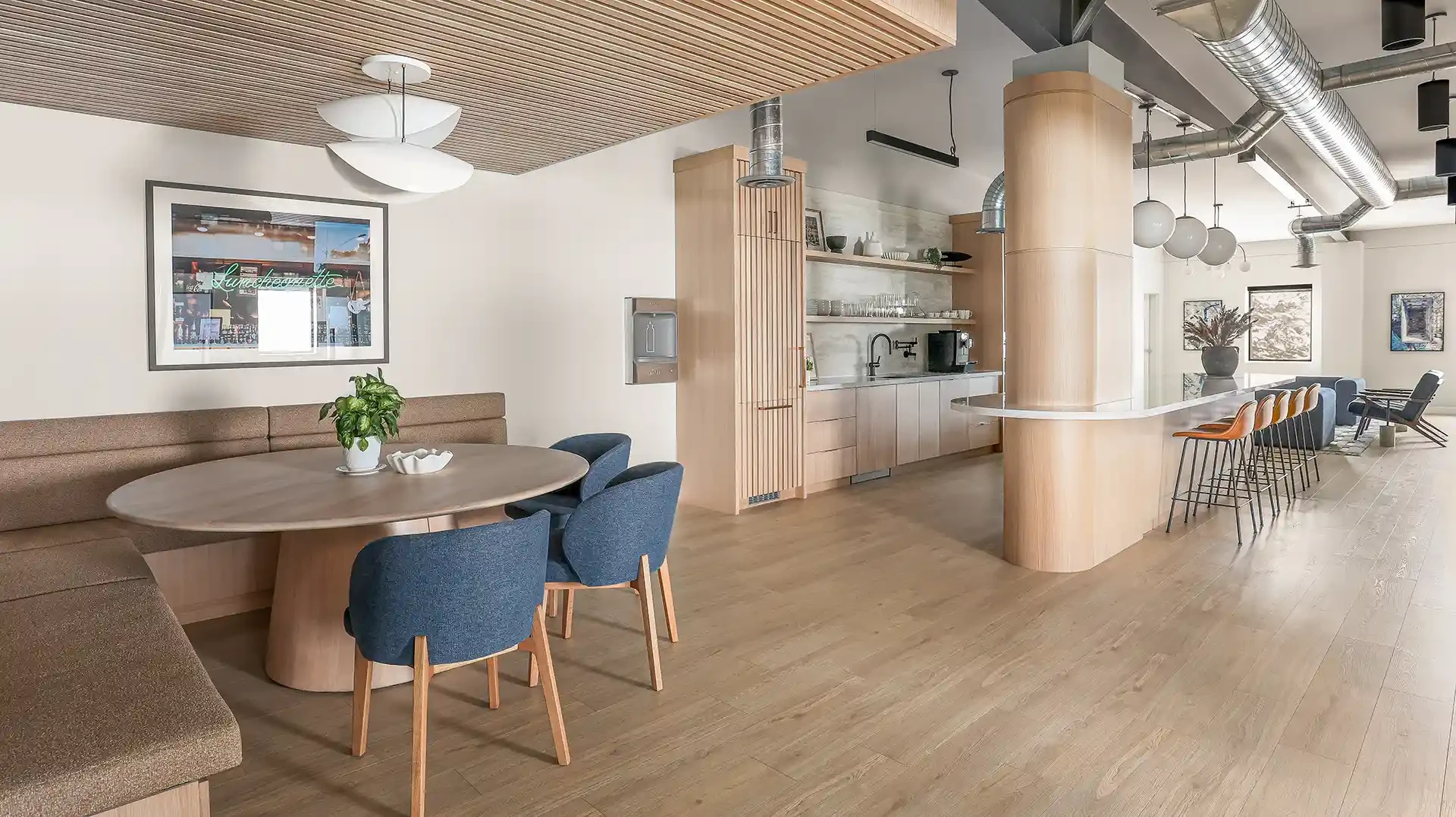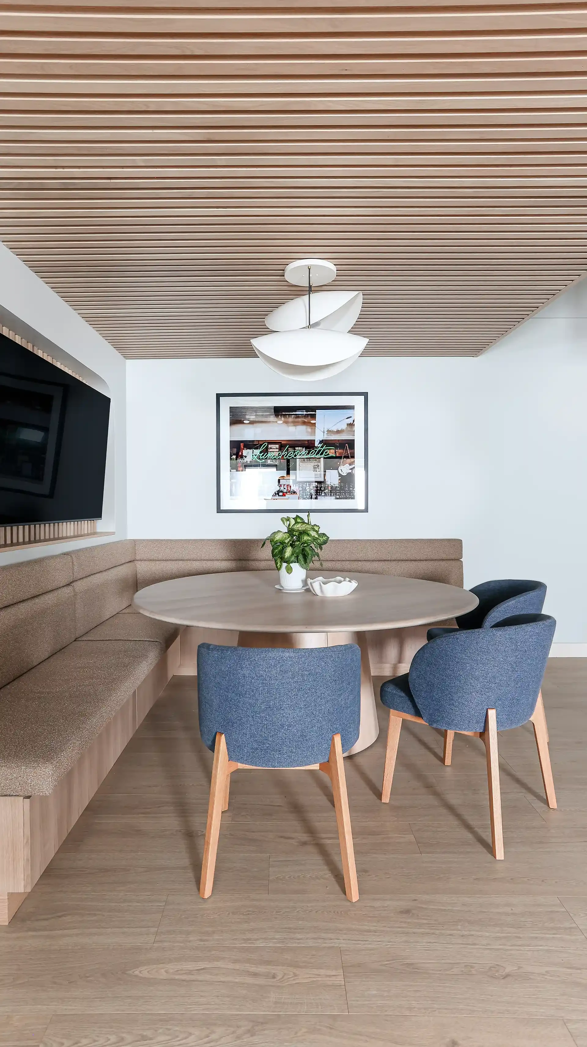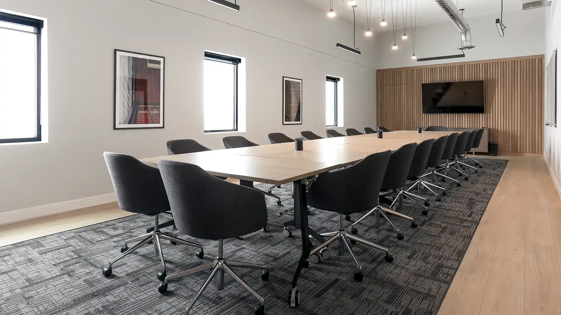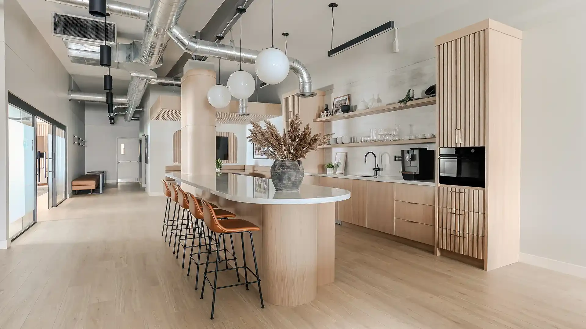 Working in partnership with Leo Design Interiors, the project focused on the full renovation of the company’s breakroom and meeting room, transforming the spaces into modern, functional environments for staff and visitors. The work included updated finishes, improved layouts, and carefully coordinated construction details that elevate the overall workspace experience.
