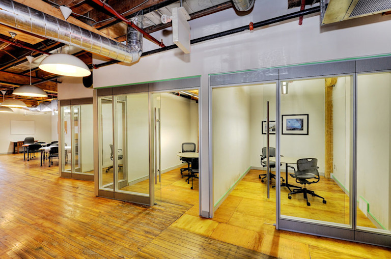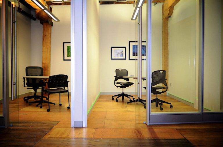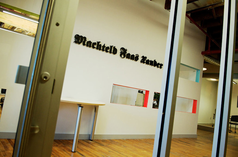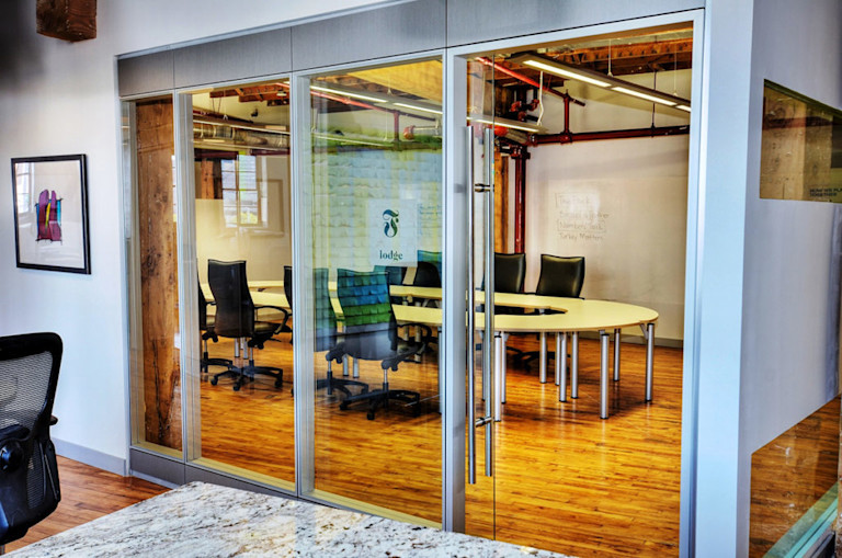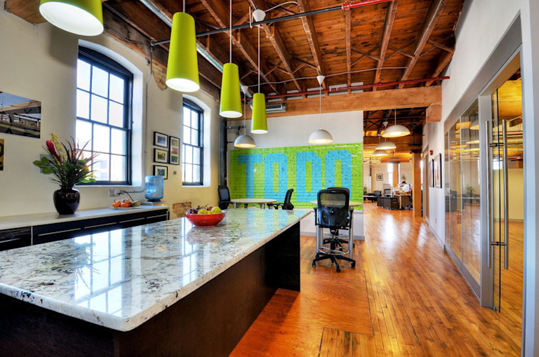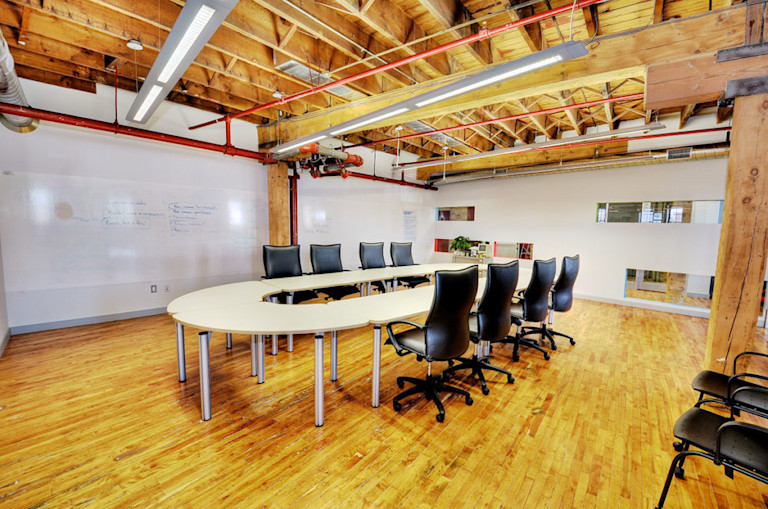Located on the second floor of The Tannery in downtown Kitchener, the 4,300 square foot office space was transformed from a blank canvas to a modern and unique office for the growing tech company. This space focused on leaving heritage elements, such as the original wood floors and open-concept brick-and-beam structure, in place and accenting them with new and fresh features. The focal point of the office is the ‘tilted’ boardroom with colour-accented cut-outs in the center of the space. The remainder of the office is open concept with a series of private offices and meeting rooms around the perimeter.