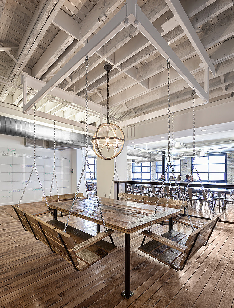 Located at 119 King Street West in Kitchener, Vidyard looked to expand its fourth floor space into the third floor of The Simpson Block. Designed by Thinkform architecture + interiors, this space features an open office layout with a new convenience stair between the two floors. This space pays tribute to the historic building through exposed structure and modern industrial materials while providing this modern young company with the open office layout fitting for their work environment. The open office layout houses lounge spaces, meeting rooms, and glass partitions.