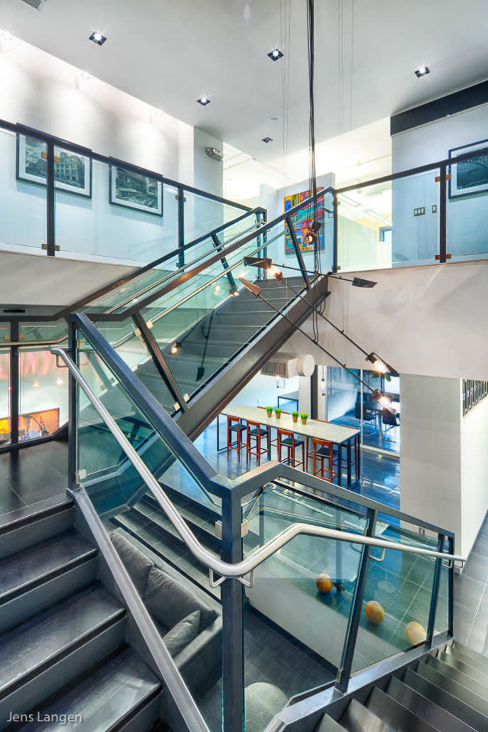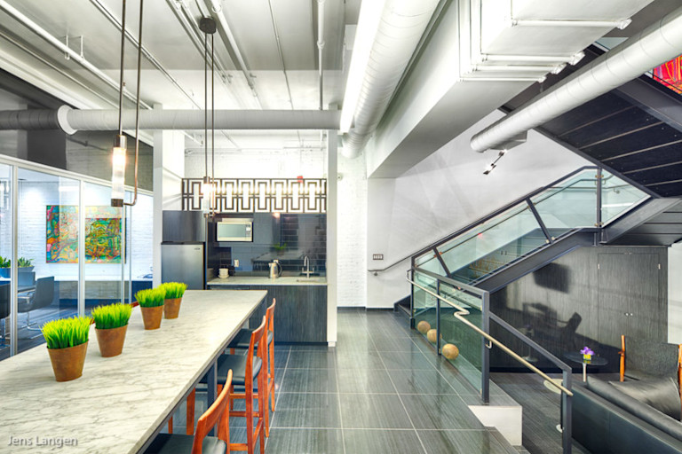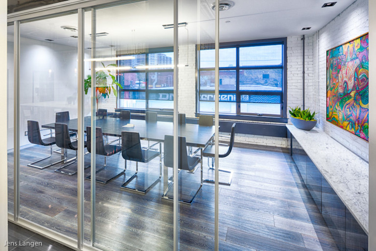 Located at 119 King Street in Kitchener, Perimeter Development Corporation decided to relocate its head office from Toronto into their newly redeveloped property in The Simpson Block. The two-storey office fit-out involved the collaboration of Thinkform Architects + Designers to create a modern, loft-style office space. The final product includes exposed high ceilings and interior brickwork as well as a modern glass and aluminum feature staircase. This project won the 2013 Design at Work Western Ontario Award presented by the RGD, ARIDO, and ACIDO.